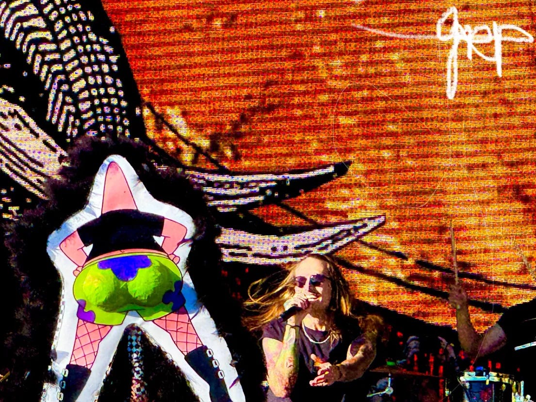At 34 even without the swirling thoughts of who am I or the insecurity of my outfit, the magic quieted the part of my brain that loves to cling to what could go wrong. The charisma wafted from each stage and was only bolstered by a free t-shirt landing at my feet. Each small stage band is a spark of hope for our future as a society. A decade younger than me and screaming for a new world.